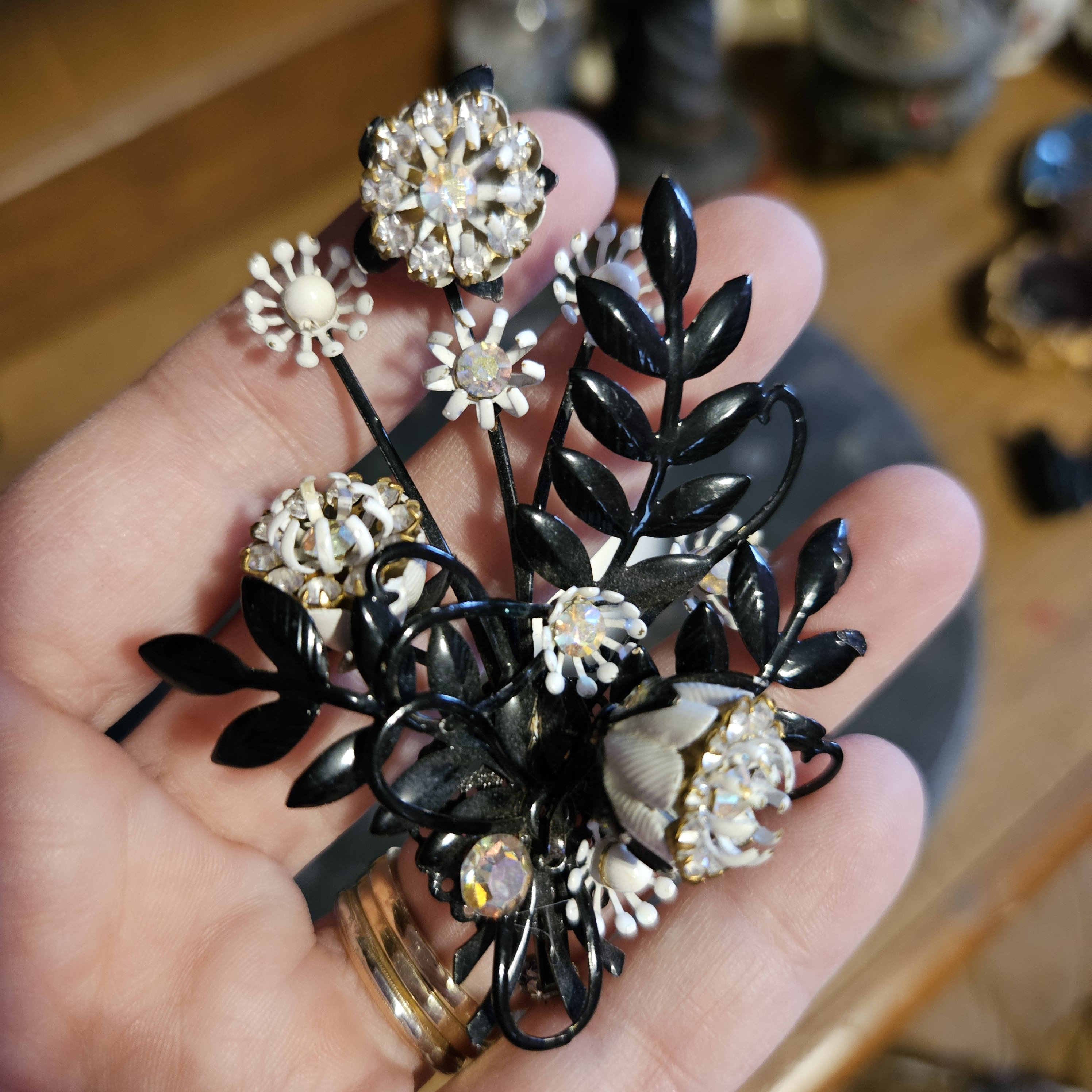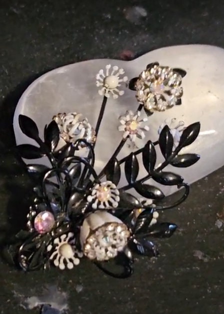 This sparkling vintage brooch is more than just a beautiful accessory—it’s a subtle yet powerful piece of wearable protection. Featuring a classic black-and-white design, it pairs effortlessly with any outfit while quietly working to shield, balance, and support your energetic field.