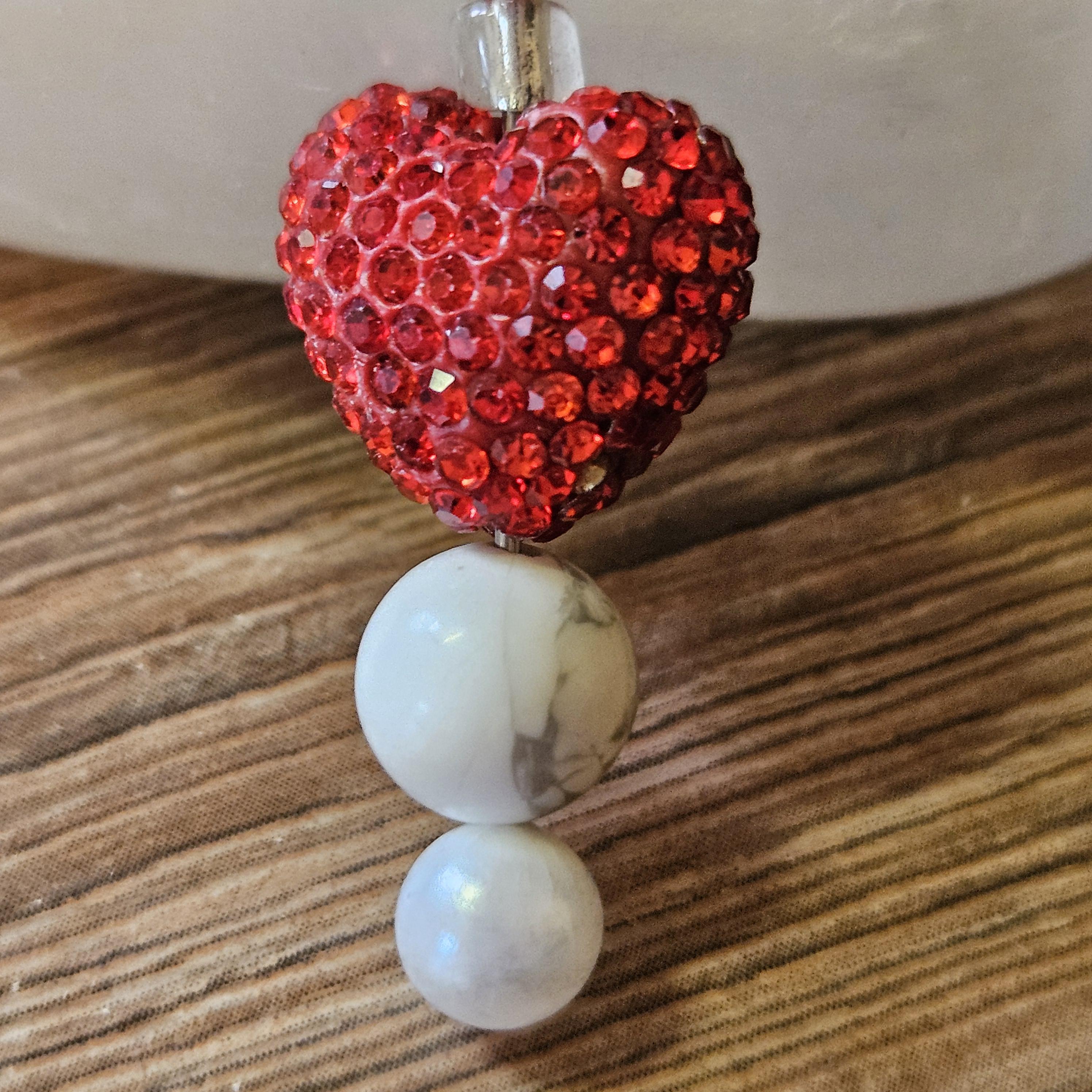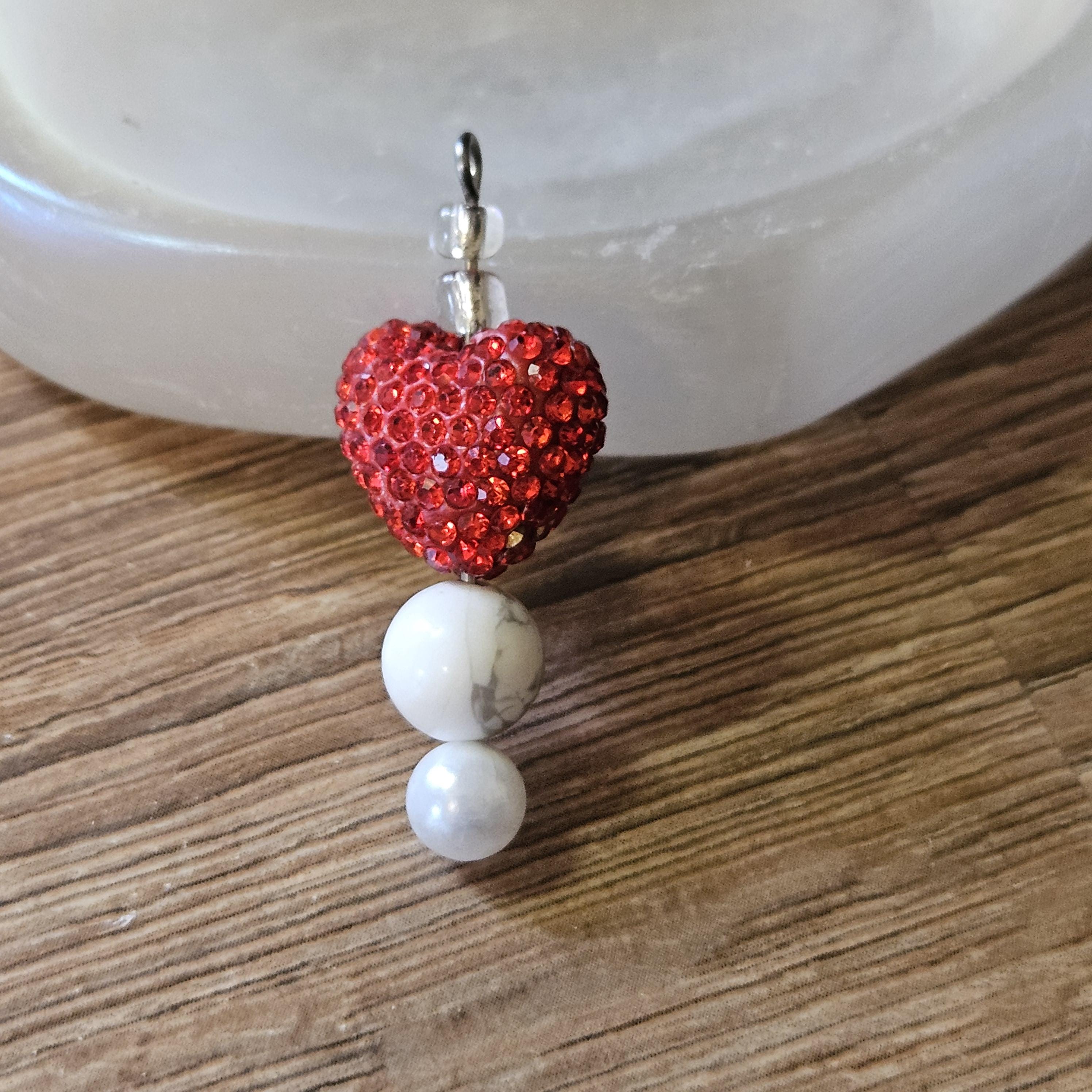 π Amulet for Love & Connection β Handcrafted Pendant, Keychain, or Car Charm with Sparkling Heart β’ Howlite Bead