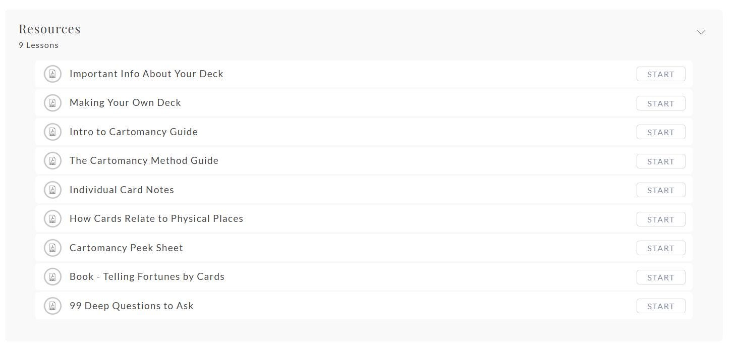 A full printable cartomancy deck PDF is included for those who prefer a ready-to-use format or want to practice alongside a handwritten deck.