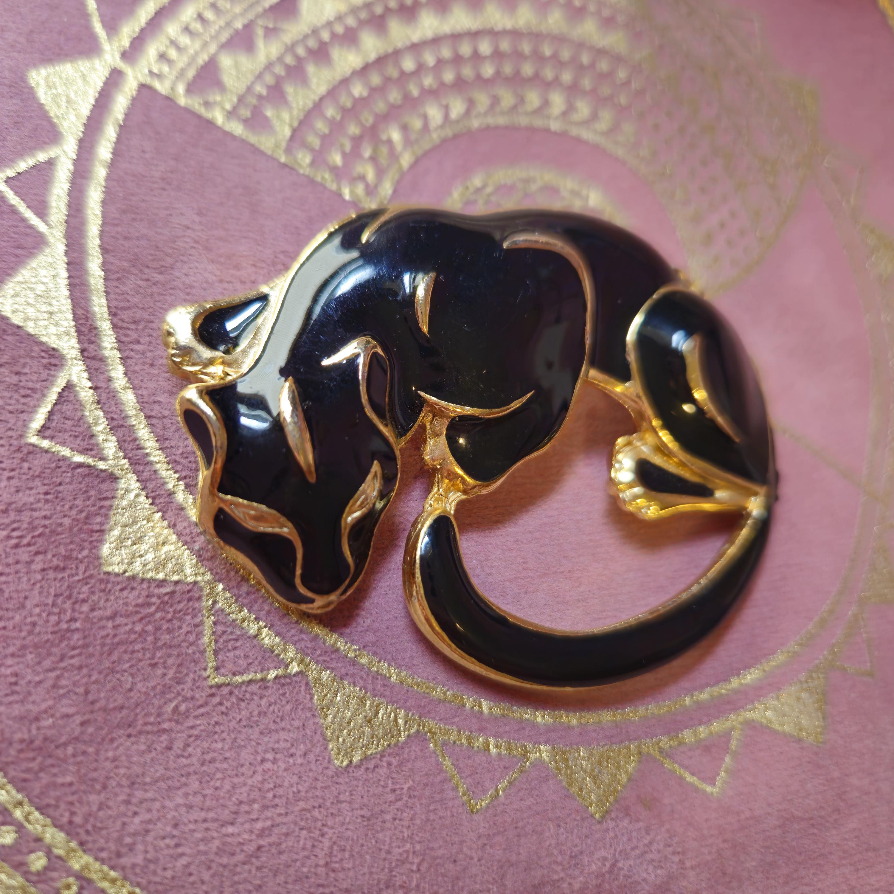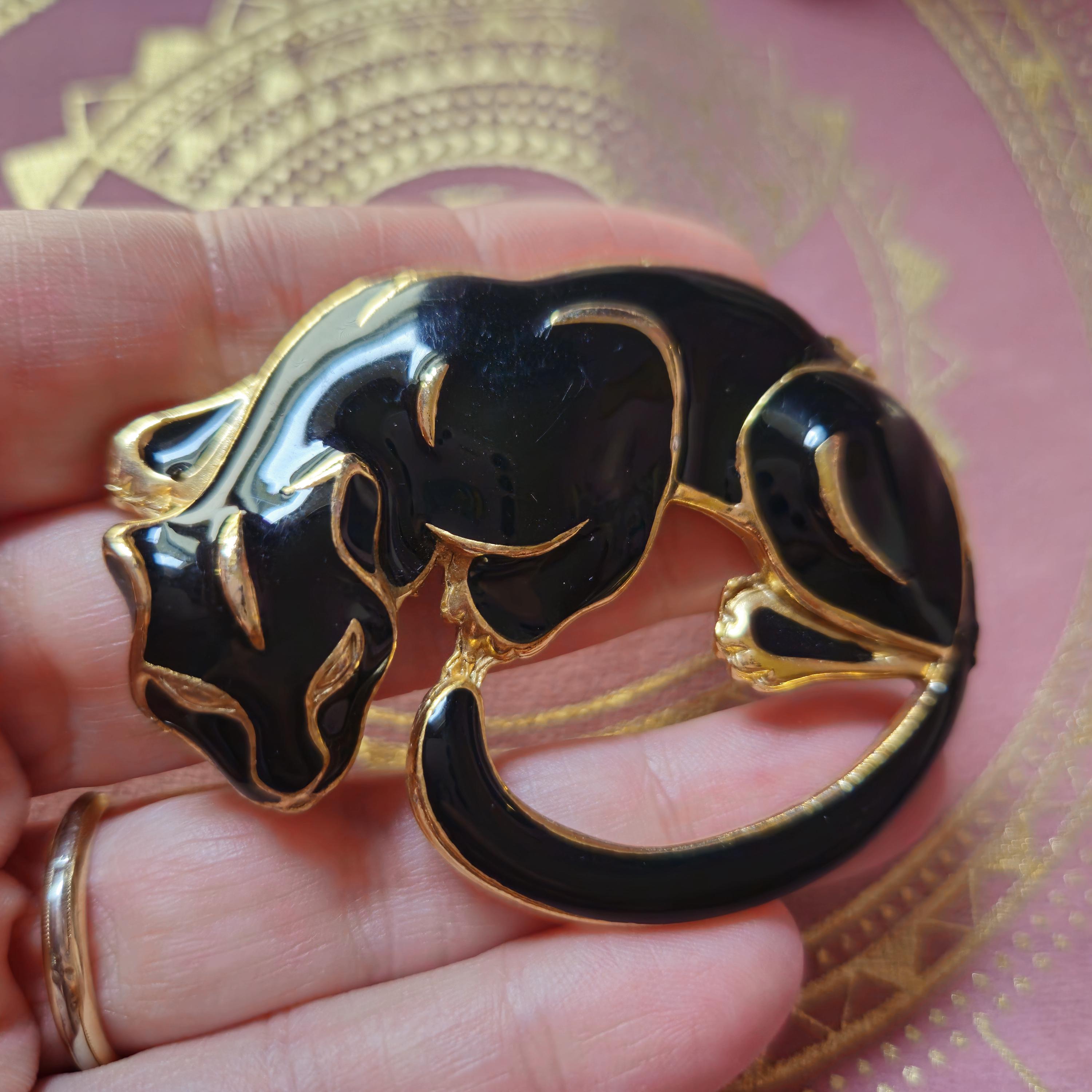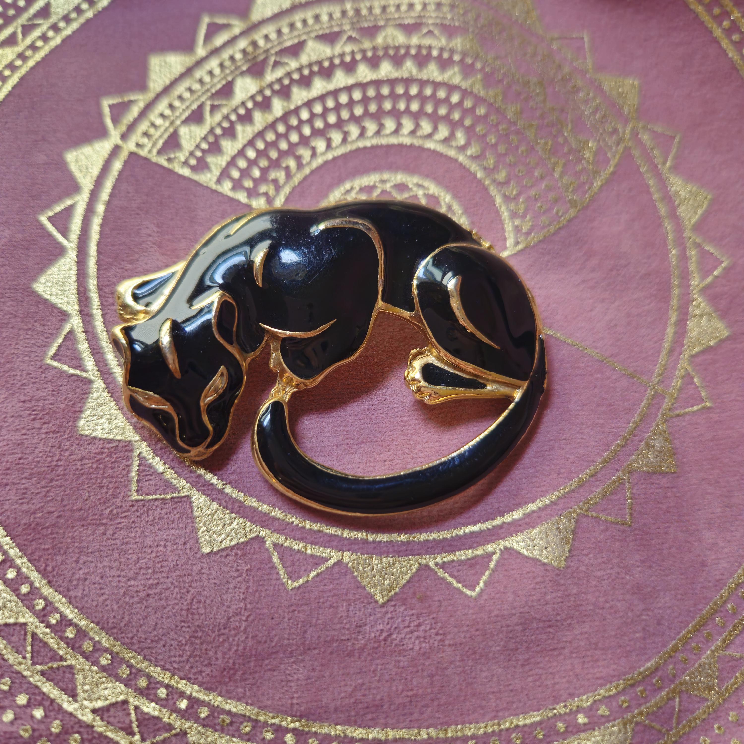 Vintage black panther brooch, imbued through lineage rituals for protection & reflection