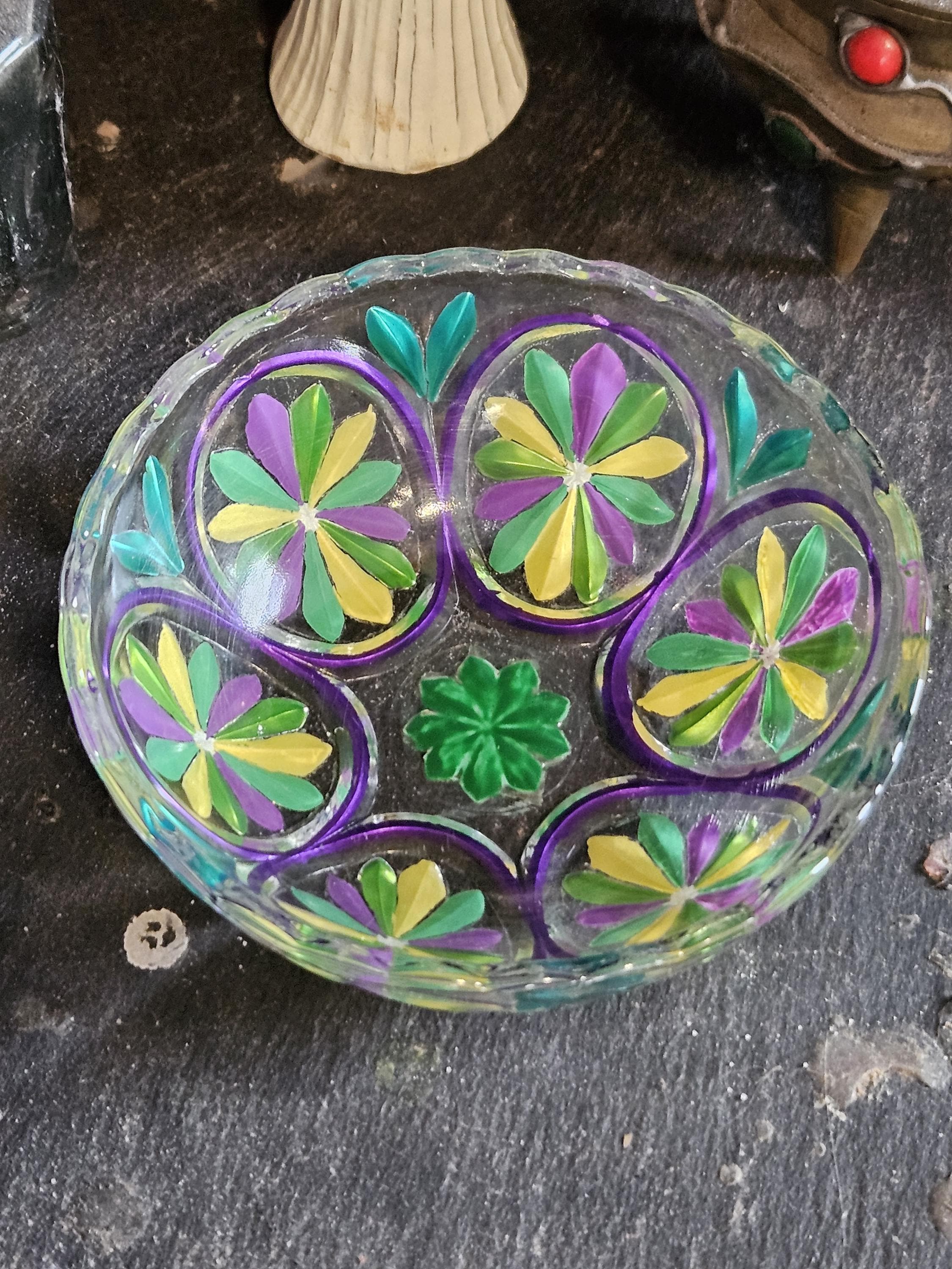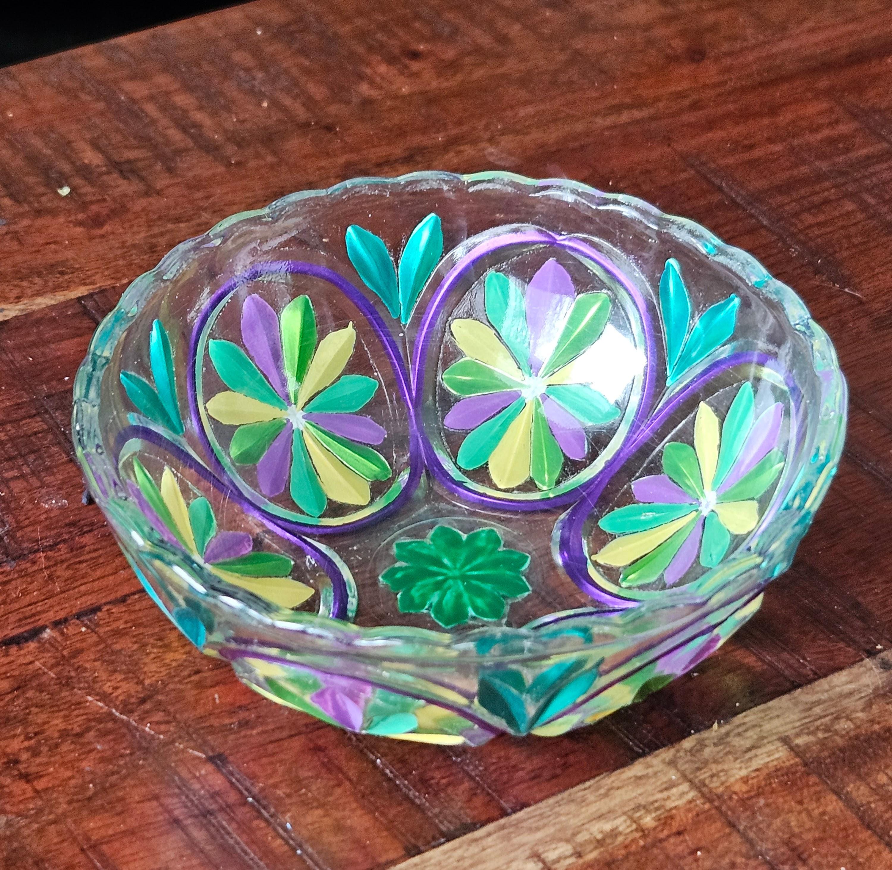 This beautiful upcycled vintage glass piece adds a joyful pop of color and creative personality to any sacred space, reading corner, or spiritual décor collection.