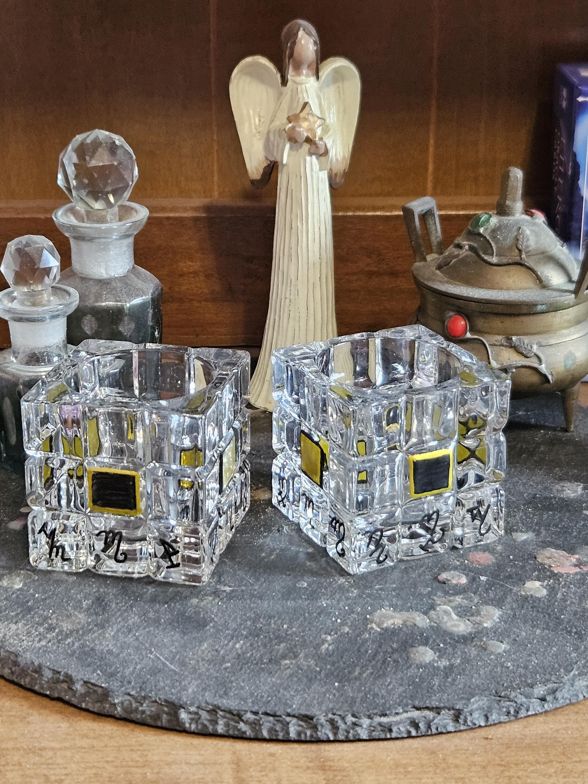 These two gorgeous vintage glass candle holders have been lovingly upcycled into beautiful ritual pieces designed for protection and sacred space work.